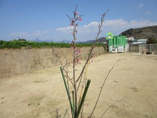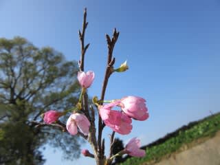 寒い冬を越した細い木ですが、この春初めての花を咲かせることができたことに感動する保育士たち(*^_^*)