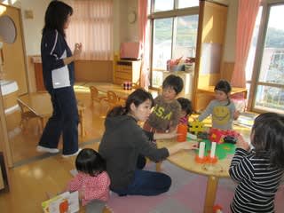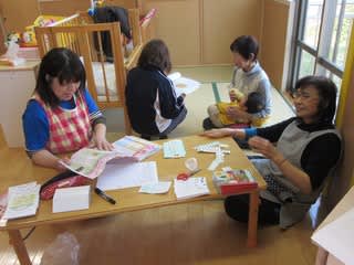 伝承遊びのひとつ”かるた”。ひらがなに興味が出てきた3歳児のお友だちも、 自分たちで読んだり、とったり楽しんでいました♩