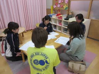 各クラスに分かれて懇談会も開かれ、年齢ごとの発達や生活の流れ、行事などの話が担任からありました。