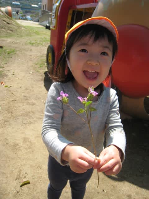 近くのグラウンドの方へお散歩へいってお花を見つけたり、思い切り走ったり