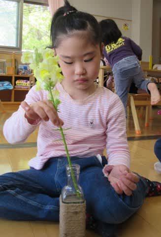 「こうしたらうまくできるよ~」と年長さんは生け花の先生になってくれて微笑ましかったです