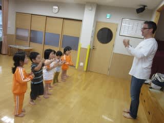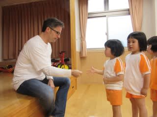 毎月2回の英語で遊ぼう。今年度から始めた3歳児さんもすっかり楽しんでいます(*^_^*)