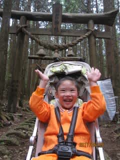 みんなが登っている時、頑張って鳥居を5つくぐってみました!ちょっと休憩・・・その後は宝原のつつじ見物をしながら森林浴を楽しみました!