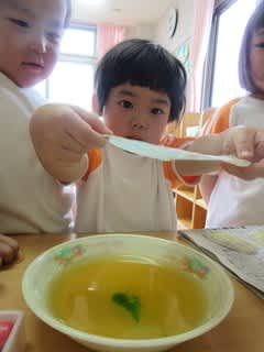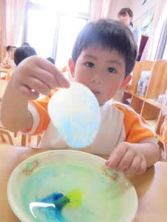 3歳児さんは先日マーブリングに挑戦しました。