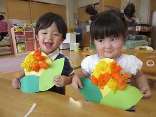 2歳児さんのクラスでは、朝から製作が始まりました!