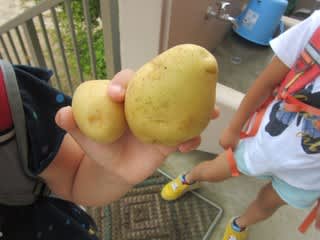 お家の方が丹精込めて作られたじゃがいもでした。この後、給食のお味噌汁の具材へと変身して、美味しくいただきました