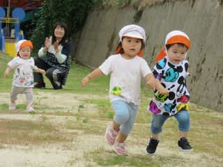 今日は1歳~2歳児さんが、かけっこの練習中!!