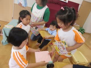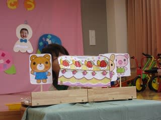 今日は8月の誕生会がありました 「何歳になりますか?」 「5歳j」 待ちに待った誕生会 嬉しくて嬉しくてたまりませんね お友達からプレゼント 「おめでとう」 「ありがとう」 今月は大型絵本と大型紙芝居の読み聞かせがありま…