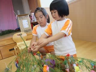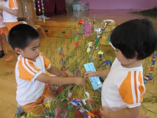 7月7日の七夕に向けて、保育園でも飾りつけを行いました。