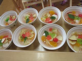 今日は子どもクッキングで『フルーツポンチ』を作りました(^^♪