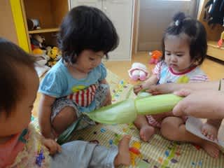 未満児さんも、皮むきにチャレンジしてみましたよ(^^)