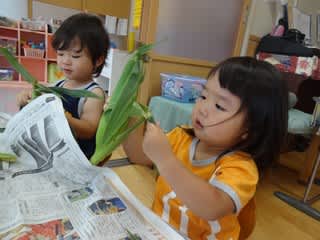 昨日、以上児さんがとってきてくれたとうもろこし!
