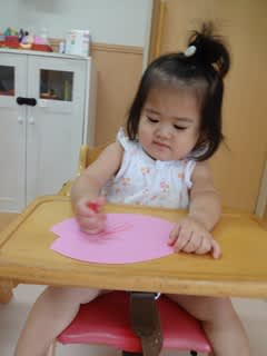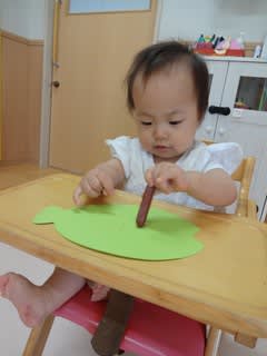1歳児の真剣な顔。小さな手、指に全神経を注いでいます。 24日の英語であそぼうです。4歳児は第2回目で、とても意欲的です。次々と今まで耳にしなかった英語の単語が・・・ でも楽しい工夫が沢山してあって、どんどん吸収していま…