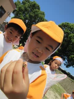 秋らしく園庭にもトンボがたくさん。見事5歳児さんが捕まえていました!!