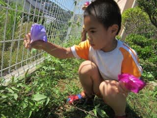 園庭にはきれいな朝顔が毎日花を咲かせています。