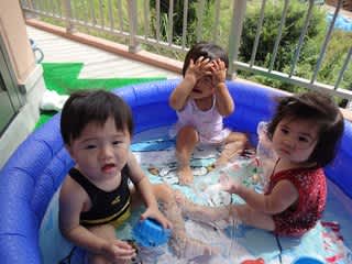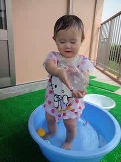 天気のいい日は0歳児さんもベランダでプール遊びを満喫(^^)