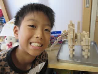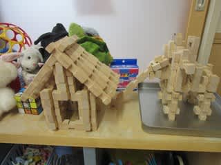 保育園で遊んでいた支援センターの小学生が、ユークリッドブロックで遊んでいましたが、とっても上手に『像さん』と『家』を作り上げました!