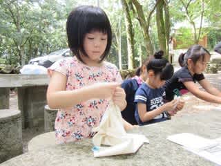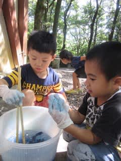 職員の方に教えてもらいながら藍染めに挑戦です!!