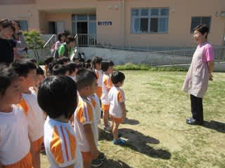 日曜日、年長さんは二小運動会に参加してきました。 スタートの合図がいつなるか、闘志満々の表情がよく伝わってきますね。 職員も職場職域対抗リレーへ出場! 園児と一緒に走り子どもたちに「ちょ、ちょっとまって~」(^_^;)…