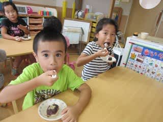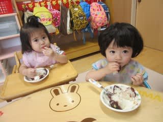 15:00 おやつの時間です(*^。^*) この日は交流日だったので、2歳児さんも一緒に♪ 今日のおやつは『蒸しパン』でした 食べた後は掃除 5歳児のお姉さんが率先して掃除をしてくれました さすが5歳児、手際がいいです☆…