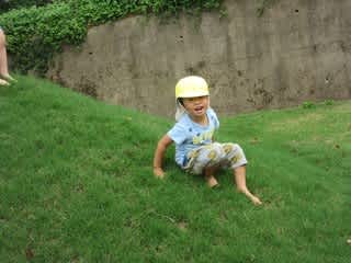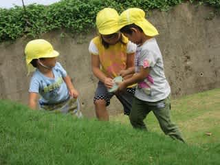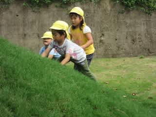 子どもたちは、芝山に上ったり、虫探しに夢中です。