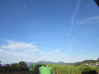 玄関から雲仙の方を見ると・・・真っ青な秋晴れです。思わず見とれてしまいますね(*^_^*)