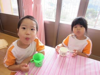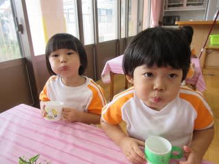 昼食後、虫歯予防のために3歳以上さんが取り組んでいます。
