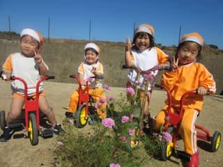 じゃーん!できたぞ~!! と遊ぶ子どもたちの横で、「お彼岸ですね~」と話す保育士。その声にピタッと動きを止め、「ん?お彼岸?やったら彼岸花ば採ってこんばやった~」と。 そこで 下の畑からいただいてきました。 「わっ!彼岸…