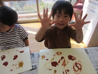 先日、筆を使わずに自分の指を使ってお絵かきに挑戦!!