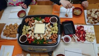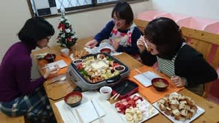 クリスマスランチメニューとして「チーズフォンデュ、チキンナゲット、野菜スープ」です☆