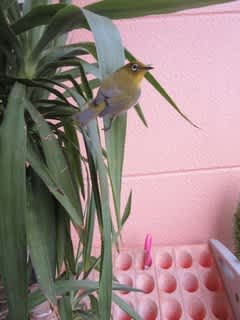 めじろの雛です。まだうまく飛べずに保育園の玄関にちょこんと座っていたんだとか・・・(^^)♡