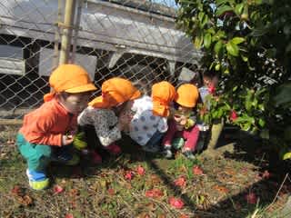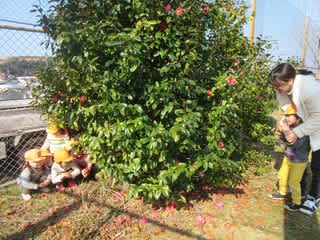 あれ、みんな椿の木の下に集まっていますよ