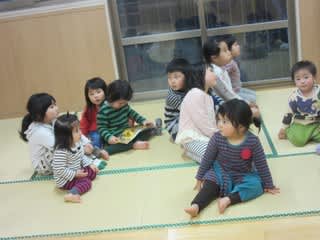 今日は、朝のうち霧がかかったような天気でしたが、気温も徐々に上昇 暑い一日になりました。 1歳児さんは、お人形のお片づけの最中です。 自分の腕からこぼれ落ちそうなお人形をしっかり抱きしめてのお片づけ 園庭では、「せ…