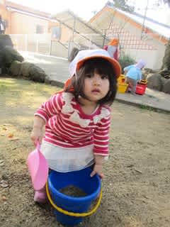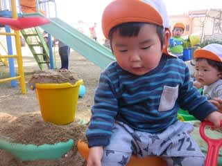 0歳児クラスのお友達もスコップを使おうとしたり、大きなバケツを運んだり・・・