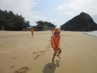 着いた途端、砂浜を走り回る子どもたち。