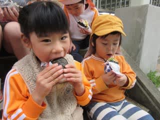 昼食はおにぎりをパクリ。