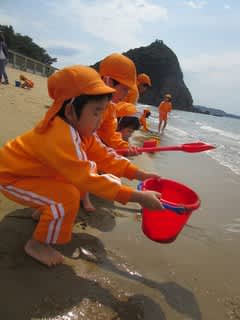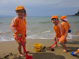 太陽、風、砂、海水・・・いろいろな自然に触れながら、お友達と言葉を交わしながら遊び込んでいました!