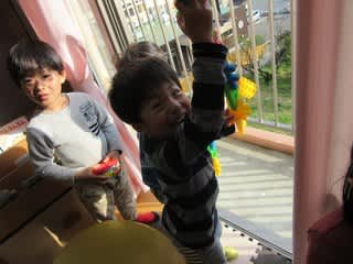 早速ベランダに釣り糸をたらして(?)感触を確かめていました(*^_^*)
