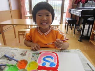 デカルコマニーという方法ですが、画用紙を開くまでどんな模様になっているかわからないのでワクワク(^_-)