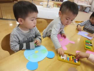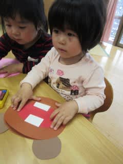 自分達で選んだ動物さんに顔のパーツを思い思いに