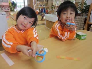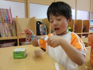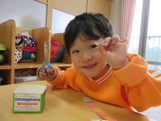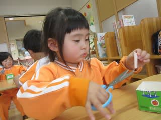 この日3歳児のお友だちは、はさみに挑戦(^^)