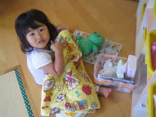 ぬいぐるみを寝かせて…と普段保育士と子どもたちとの