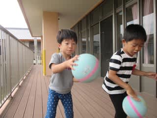 テラスではボール遊びを楽しんでいます。