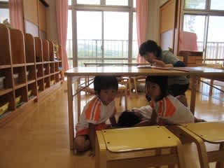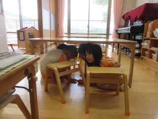 みんなで机の下に入り揺れがおさまるのを待ちます