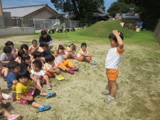 その後は、園庭へ避難し、地震の時の避難の仕方を確認しました。