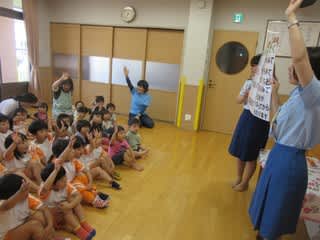 今月は地震の避難訓練です! 始めに紙芝居を見て、大切なお約束を頭の中へ・・・ みんなが知っているダンゴムシのポーズ!!頭を守ります。 一つ一つ確認をして、もしもの時に備えておきたいものです。 自宅でも、家族と一緒に&…