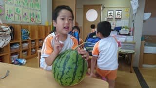 夏の風物詩の代表でもあるスイカを、みんなで美味しくいただくことが出来ました。