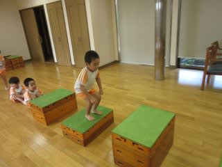 跳んだり、はしごを渡ったり。