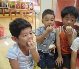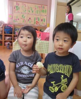 今日は2歳児から5歳児までみんな一緒におやつを食べました