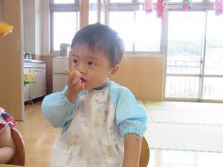 0.1歳児さんのおやつ時間の様子です。
